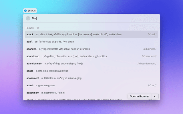 The dictionary is based on the amazing one-man-army editorial work of Sveinbjorn Thordarson.