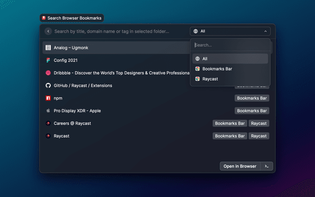 Integrate bookmarks from Chrome, Brave, Firefox or Safari.
