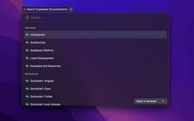 Quickly search Supabase documentation and open it in the browser